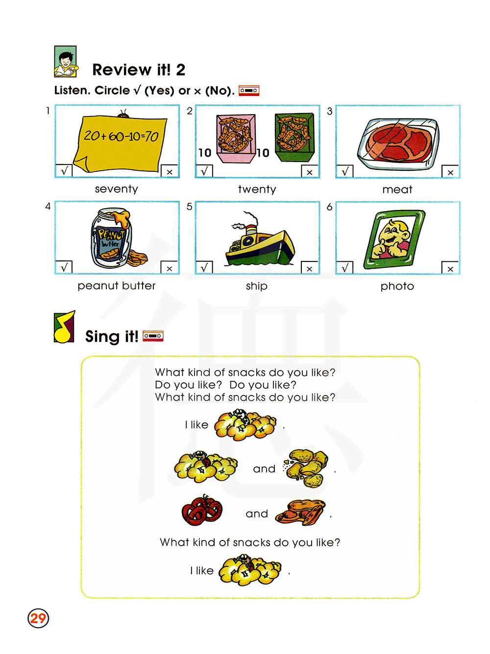 你喜欢哪种零食?喜欢哪个?喜欢哪个?你喜欢哪种零食?我喜欢爆米花。爆米花和薯条。椒盐脆饼和花生。你喜欢哪种零食?我喜欢爆米花。(歌曲)