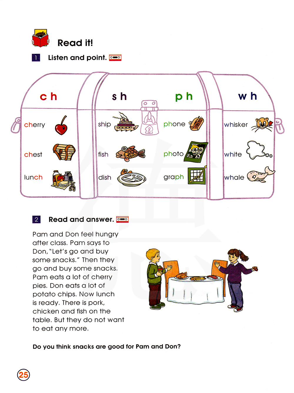 帕姆和唐下课后觉得饿了。帕姆对唐说:我们去买些零食吧。然后他们去买了一些零食。帕姆吃了很多的樱桃派。唐吃了很多薯片。现在午饭好了。桌子上有猪肉、鸡肉和鱼。但他们不想再吃了。