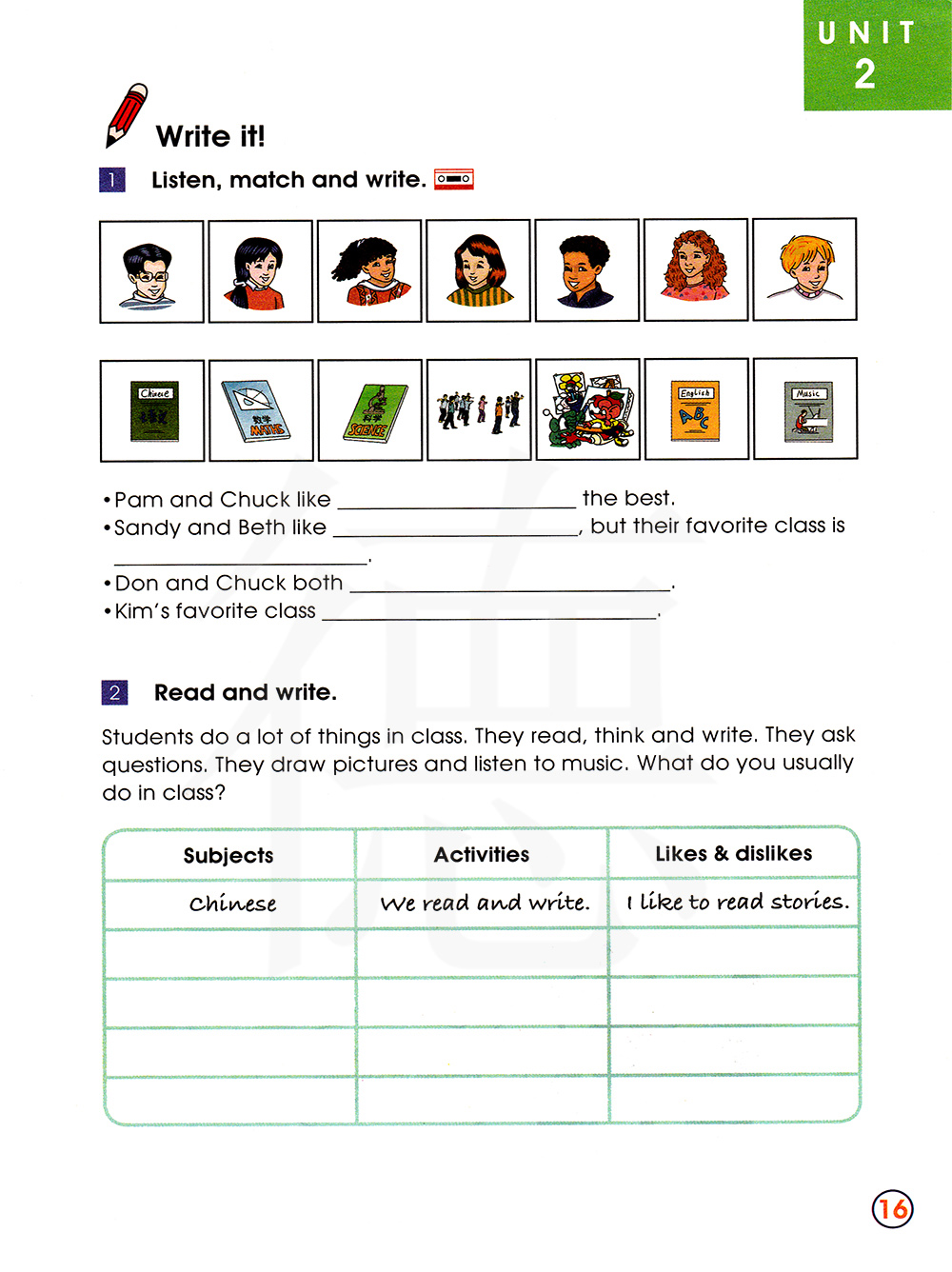 1 听录音,把对应的图片连起来并且把下面的句子补充完整。(听力练习)