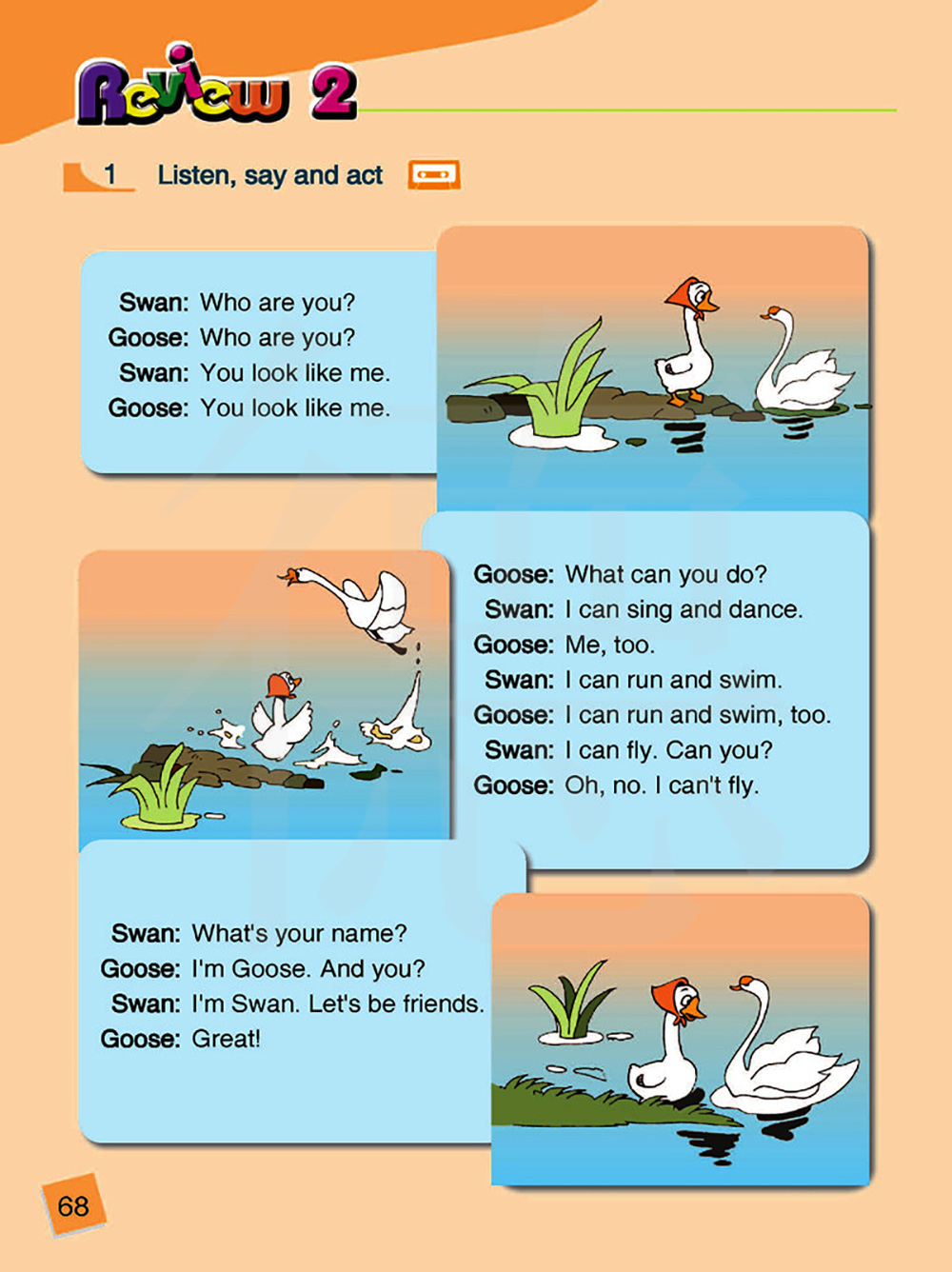 我也会跑,会游泳。我会飞,你会吗?哦,不,我不会飞。