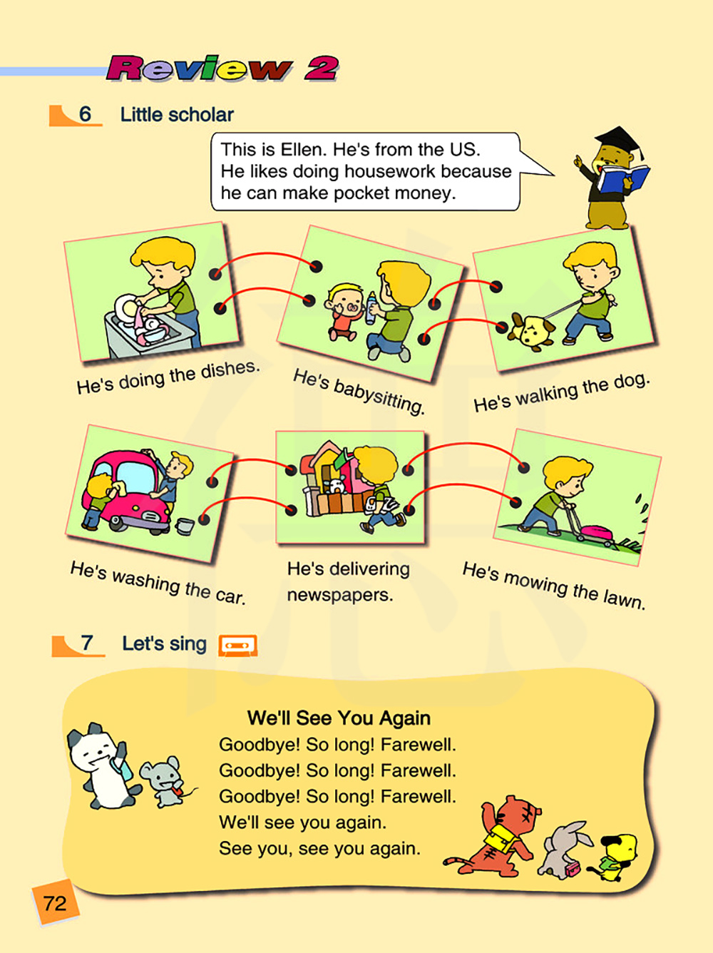 这是艾伦。他来自美国。他喜欢做家务,因为他能赚零花钱