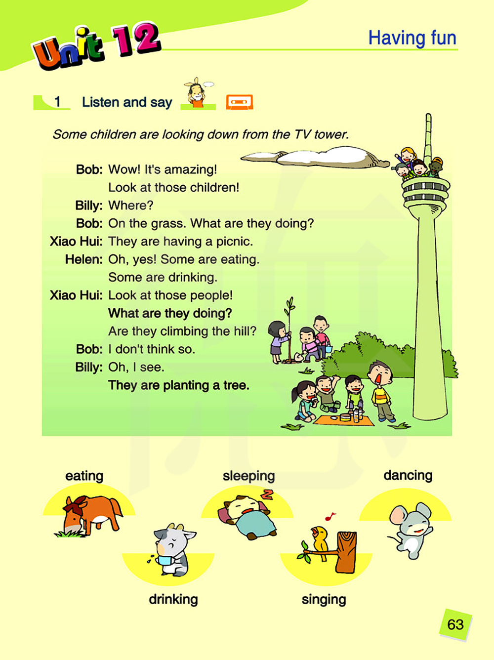 看那些人,他们正在做什么?他们正在爬山吗?我认为不是这样。噢,我知道了。他们正在植树