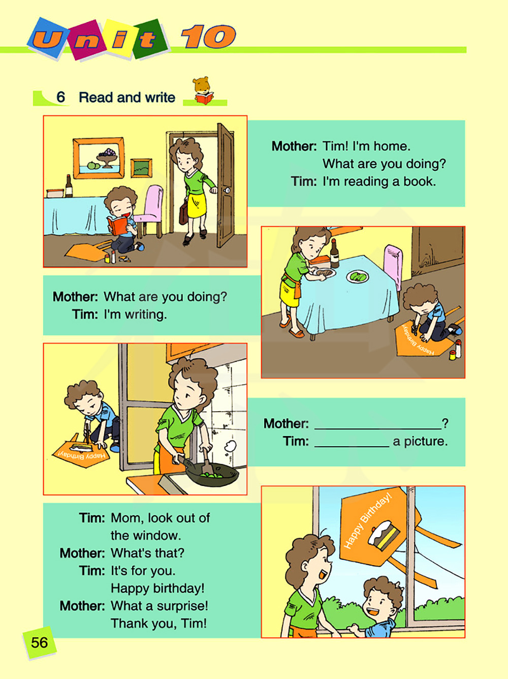 妈妈,看窗外。那是什么?它是送给你的,生日快乐!多么惊喜啊!谢谢你,汤姆!