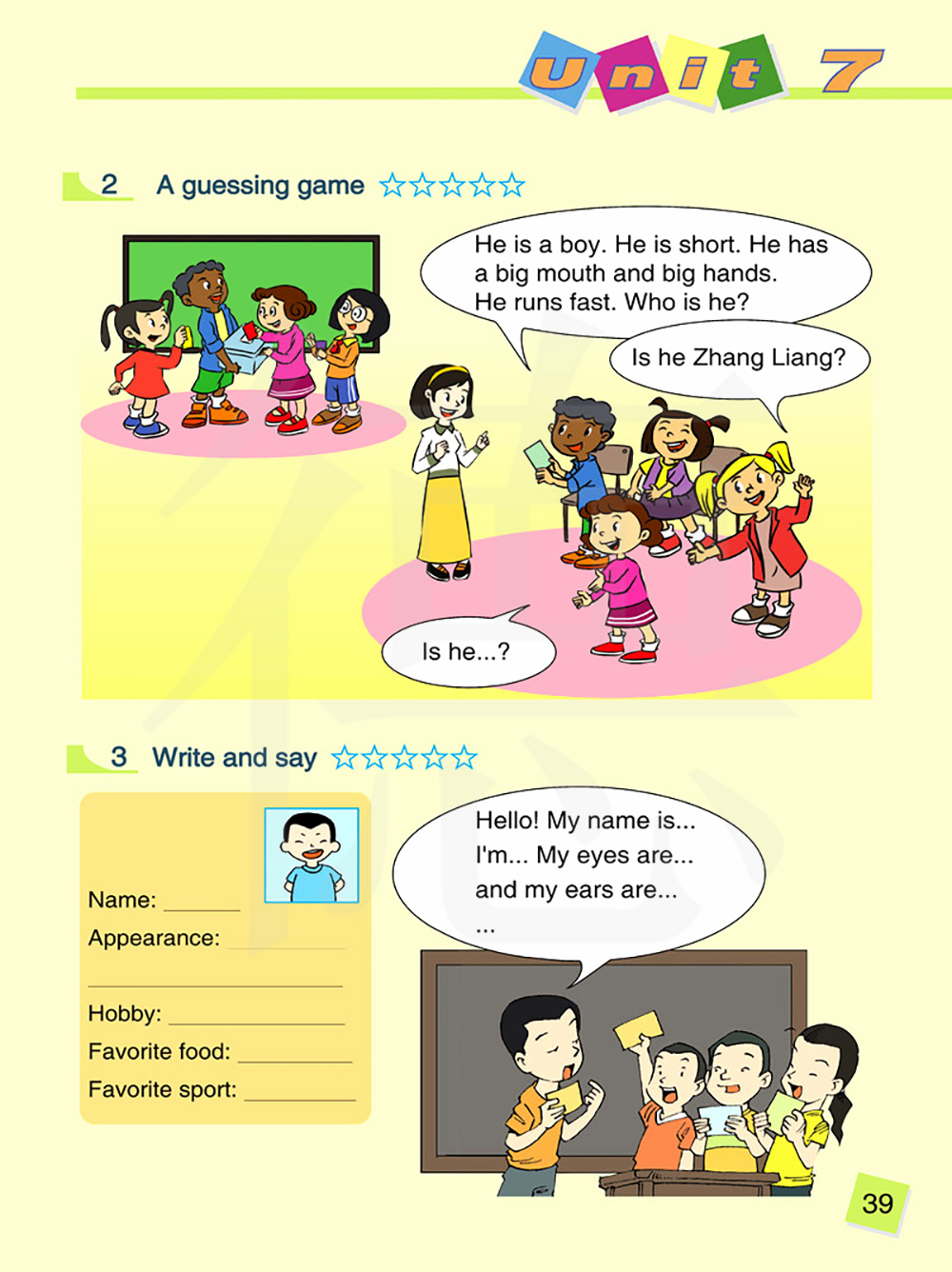 您好!我的名字是……我是……我的眼睛是……而我的耳朵是……
