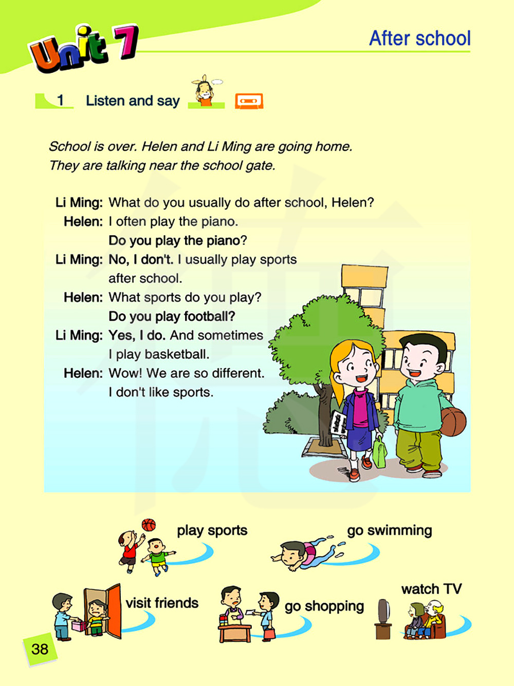 放学后你通常做什么,海伦?我经常弹钢琴。你会弹钢琴吗?