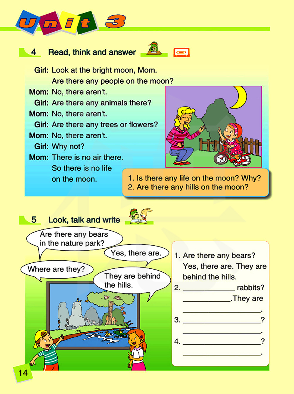 妈妈,看明亮的月亮。月亮上有人吗?不,没有。