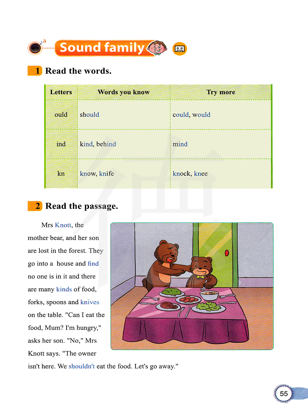 熊妈妈诺特太太和她的儿子在森林里迷路了。他们走进一所房子,发现里面没人,而且餐桌上有很多食物、叉子、勺子和小刀。“妈妈,我可以吃这些食物吗?我饿了,”她的儿子询问道。“不可以吃,”诺特太太说。 “主人不在这里,我们不应该吃这些食物,我们走吧。”