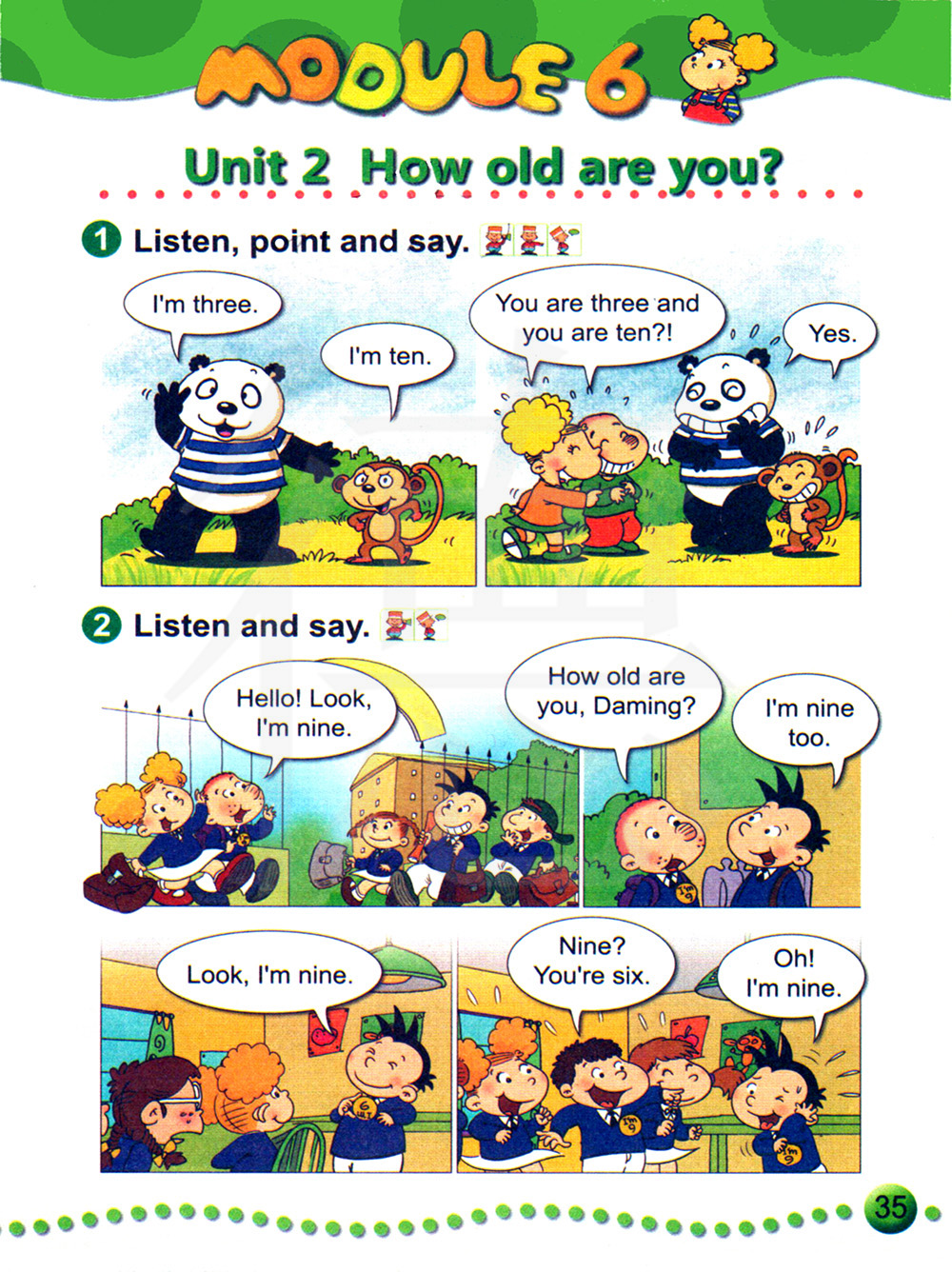 基本能听懂、说出并读出How old are you?语言结构,并能运用“I’m+数词.”的语言结构进行回答。同时,能用“I’m+数词,+too.”的语言结构表示对相同年龄的附和。