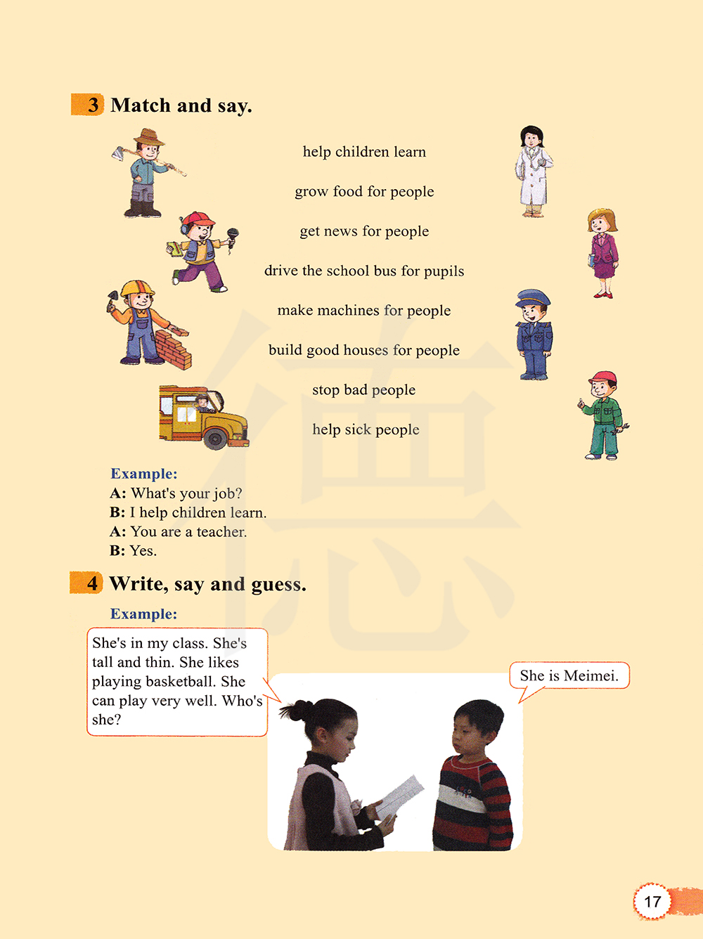 帮助孩子们学习 为人们种植食物 为人们报道新闻 为小学生开校车 为人们制造机器 为人们建造房屋 扣留坏人 帮助生病的人
