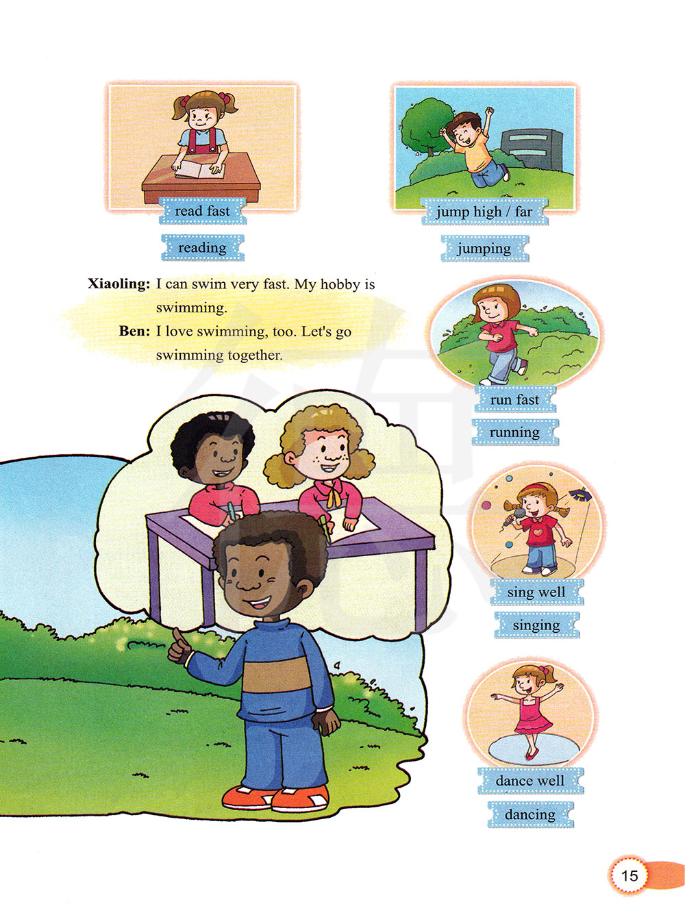 我游泳可以游得很快。我的爱好是游泳。