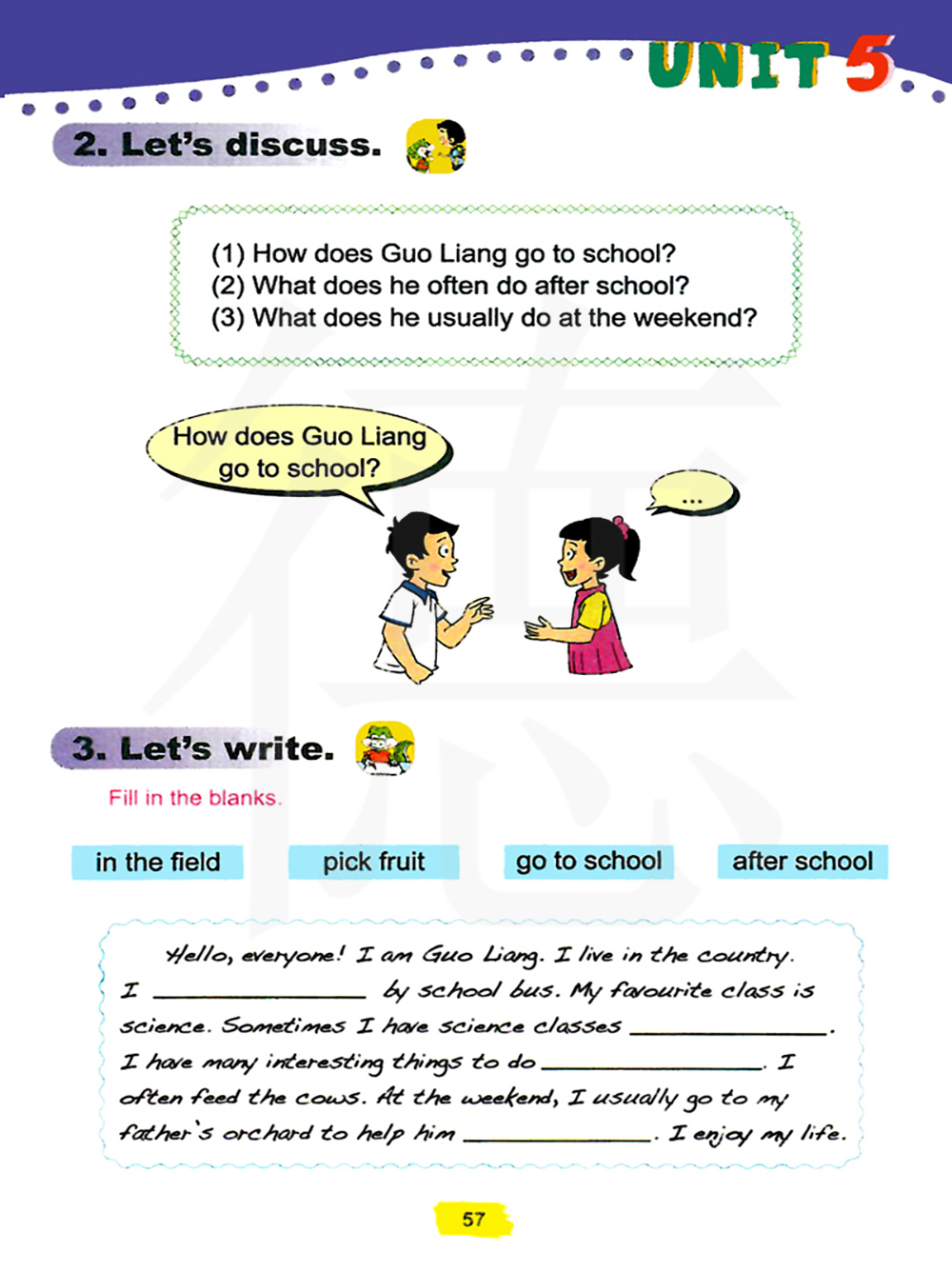 郭梁怎样去学校?放学后他经常做什么?他通常在周末干什么?