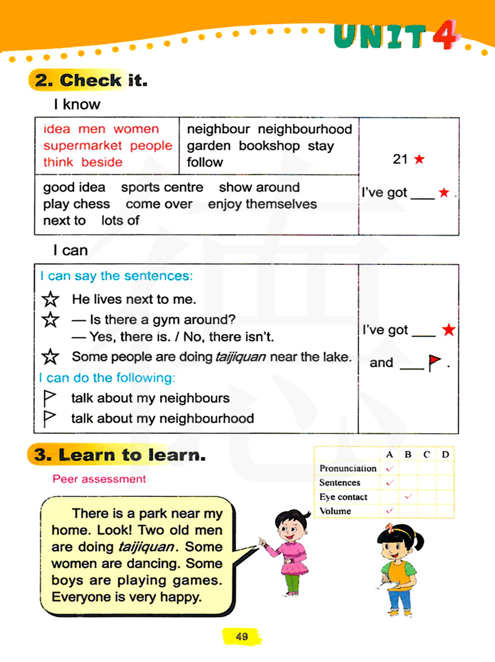 我家附近有一个公园,看!两位老人正在打太极拳,一些妇女在跳舞,一些男孩在做游戏。大家很开心。