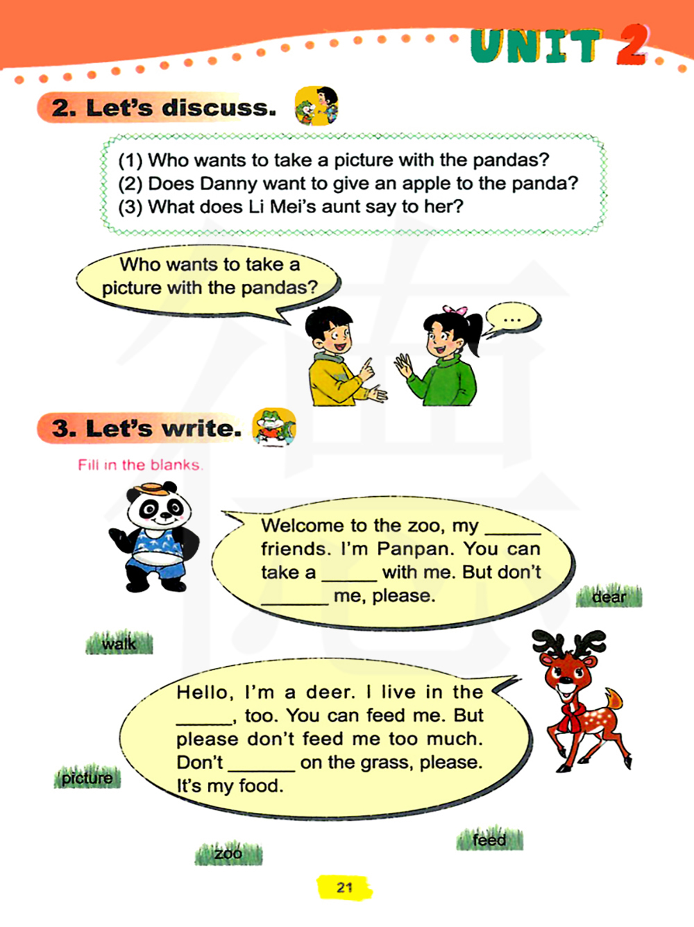 谁想和熊猫拍照?丹尼想给一个苹果给熊猫吗?李梅的阿姨对李梅说了什么?