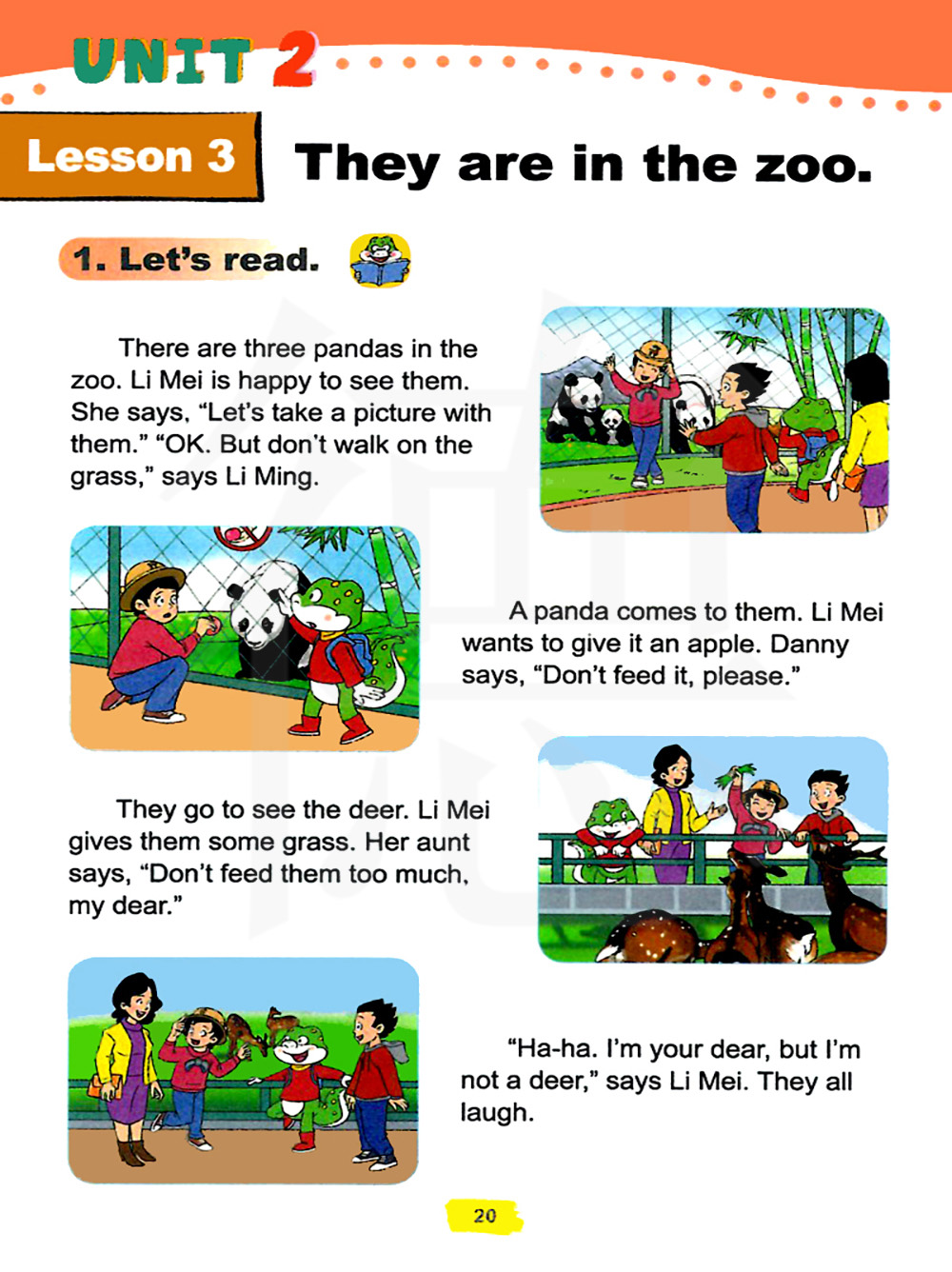 他们去看鹿,李梅给了他们一些草,她的阿姨说,亲爱的,不要喂太多。