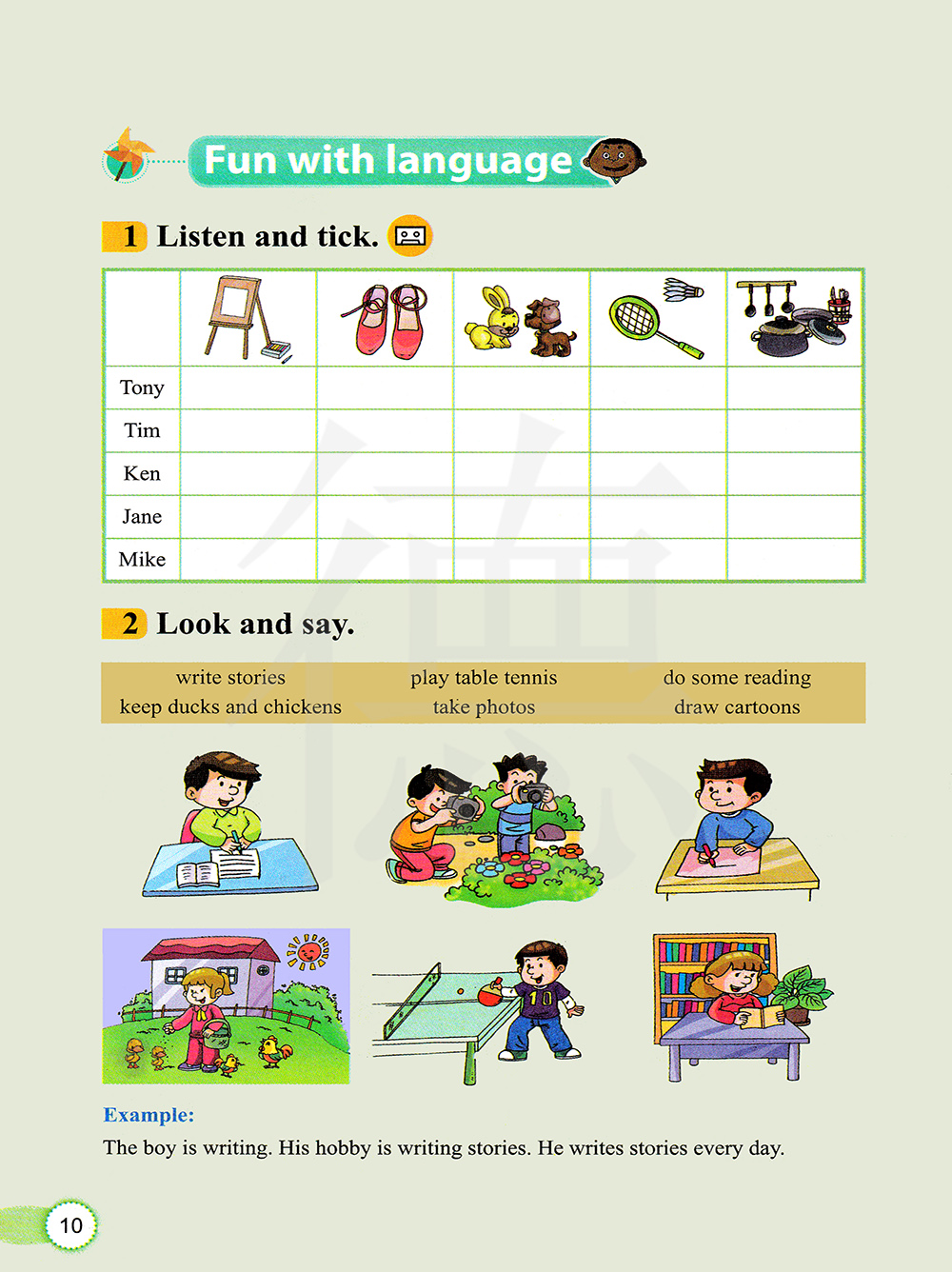 这个男孩在写作。他的爱好是写故事。他每天都写故事。