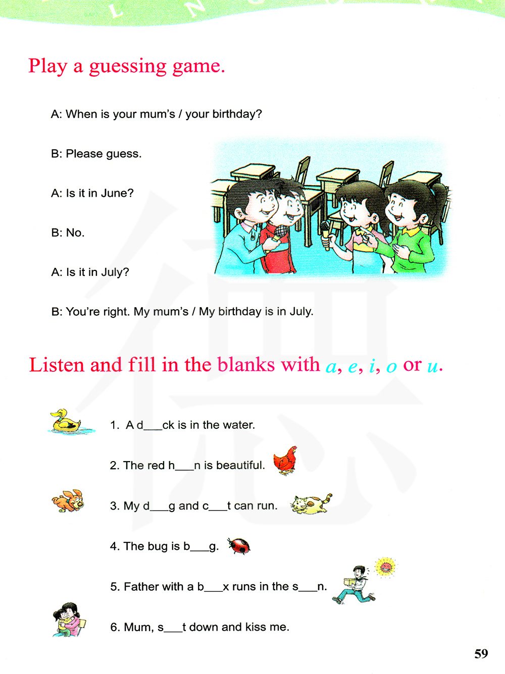 听一听,并用a、e、i、o或u这些字母来填空。