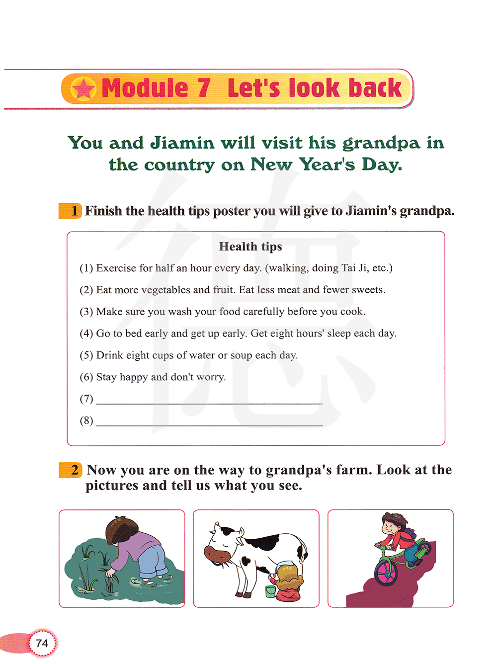 你和嘉民将会在新年探望他的住在乡村的爷爷。