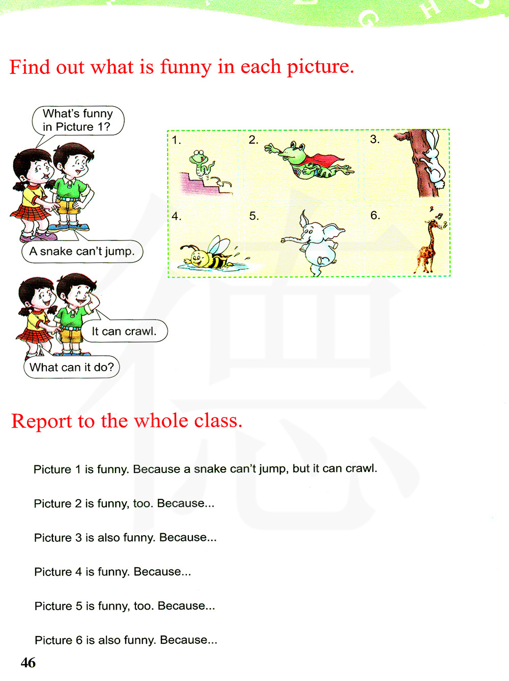 图1是有趣的。因为蛇不会跳,但是它会爬。