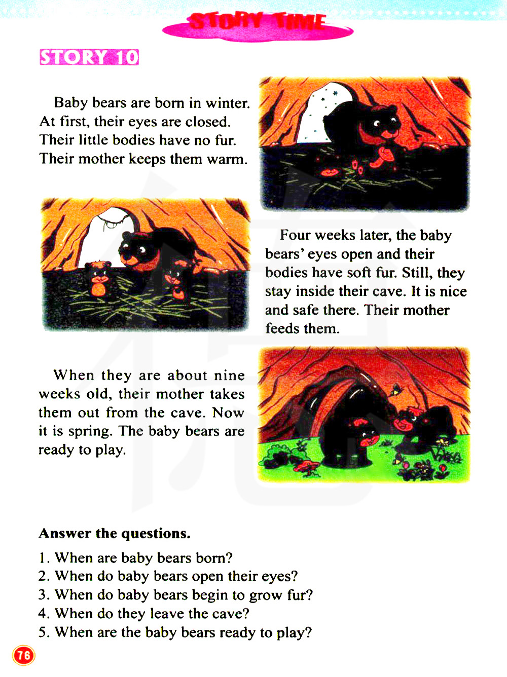 熊宝宝们在冬天出生。刚开始他们的眼睛是闭着的,小小的身体上没有毛。他们的妈妈给他们取暖。