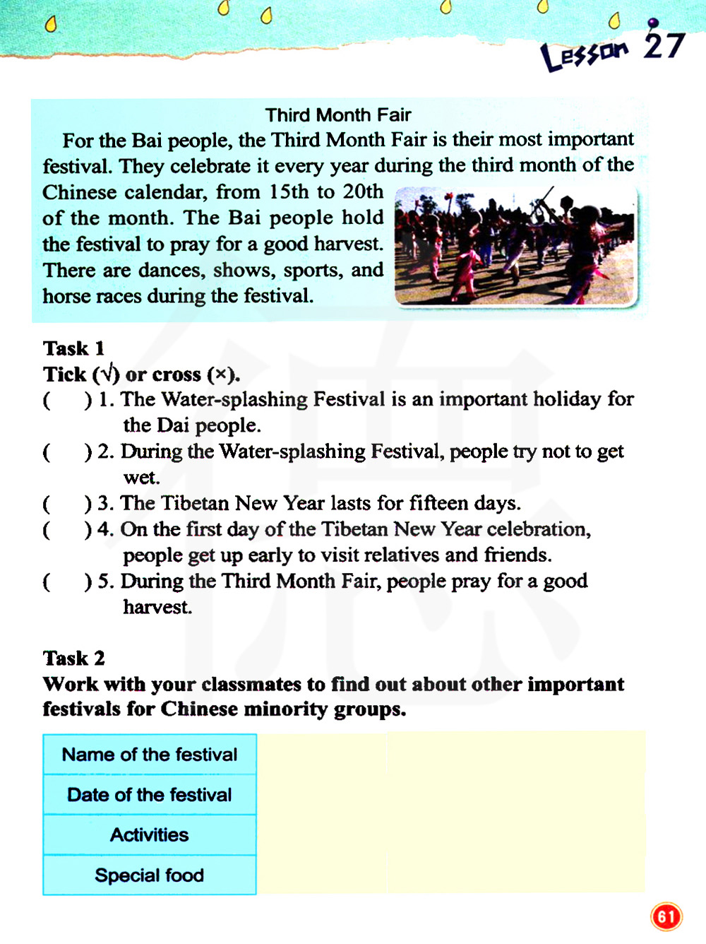 任务二。与你的同学合作找出中国少数民族的其他重要节日