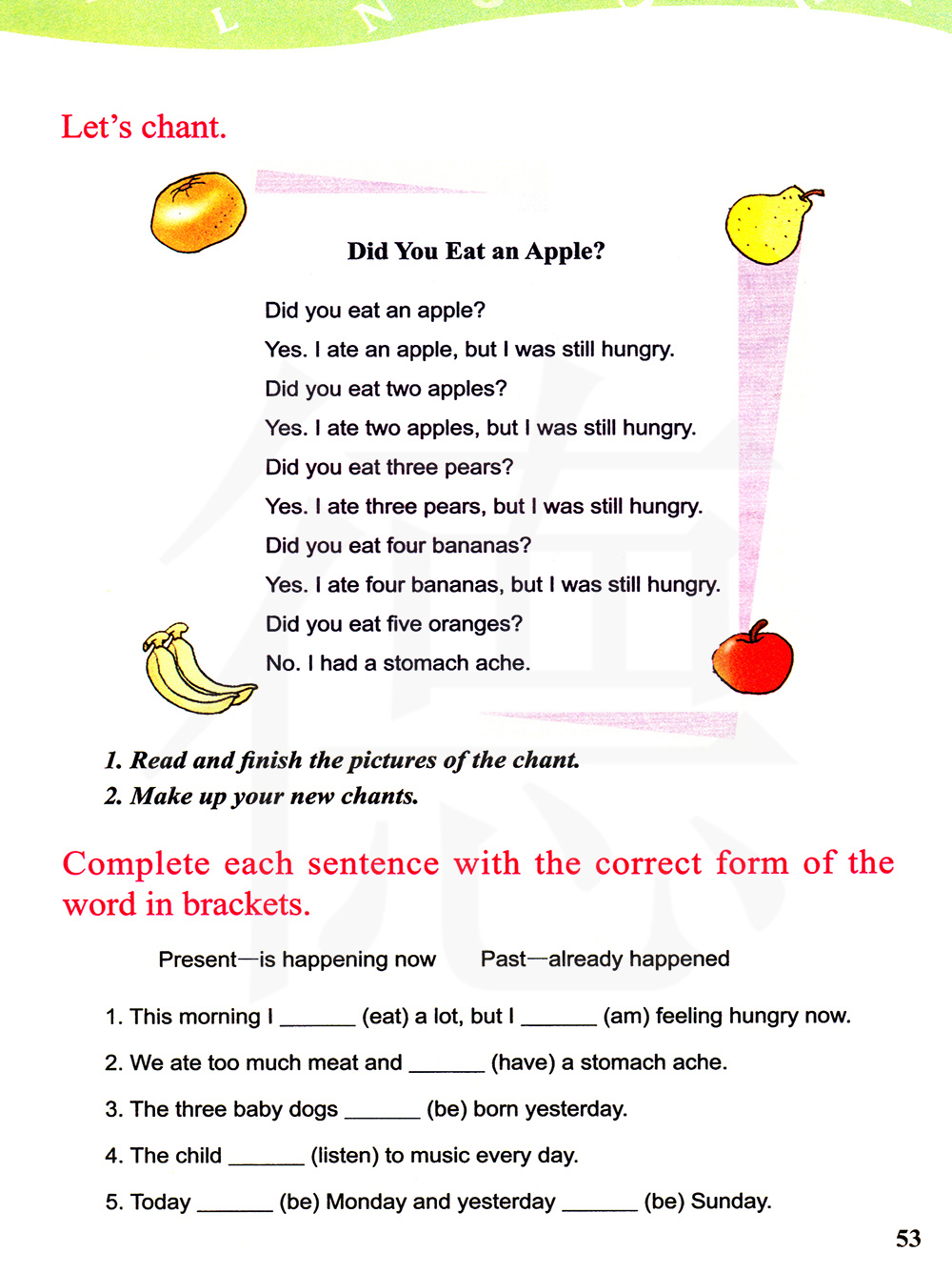 你吃了苹果吗?是的,我吃了一个苹果,但我还是很饿,你吃了两个苹果吗?是的,我吃了两个苹果,但我还是很饿,你吃了三个梨吗?是的,我吃了三个梨,但我还是饿了,你吃了四个香蕉吗?是的,我吃了四个香蕉,但我还是很饿,你吃了五个橘子吗?不,我胃痛。