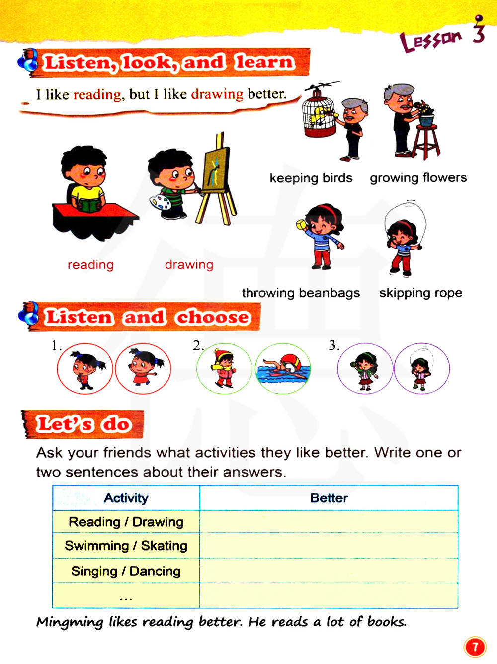 问问你的朋友他们更喜欢什么活动。针对他们的回答写一个或两个句子