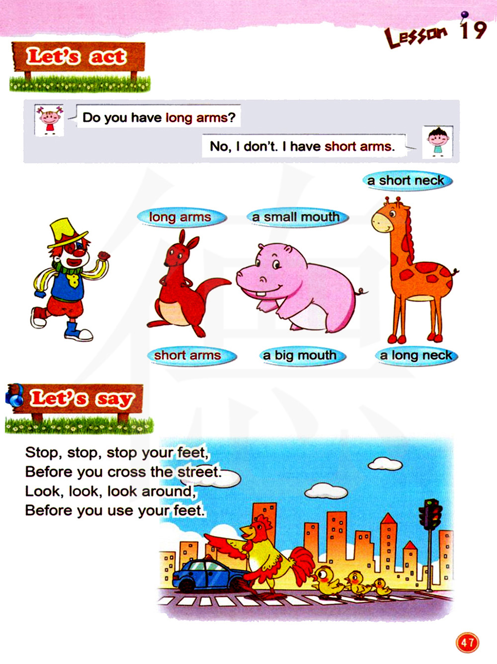 你有长长的胳膊吗?不,我没有。我有短短的胳膊。