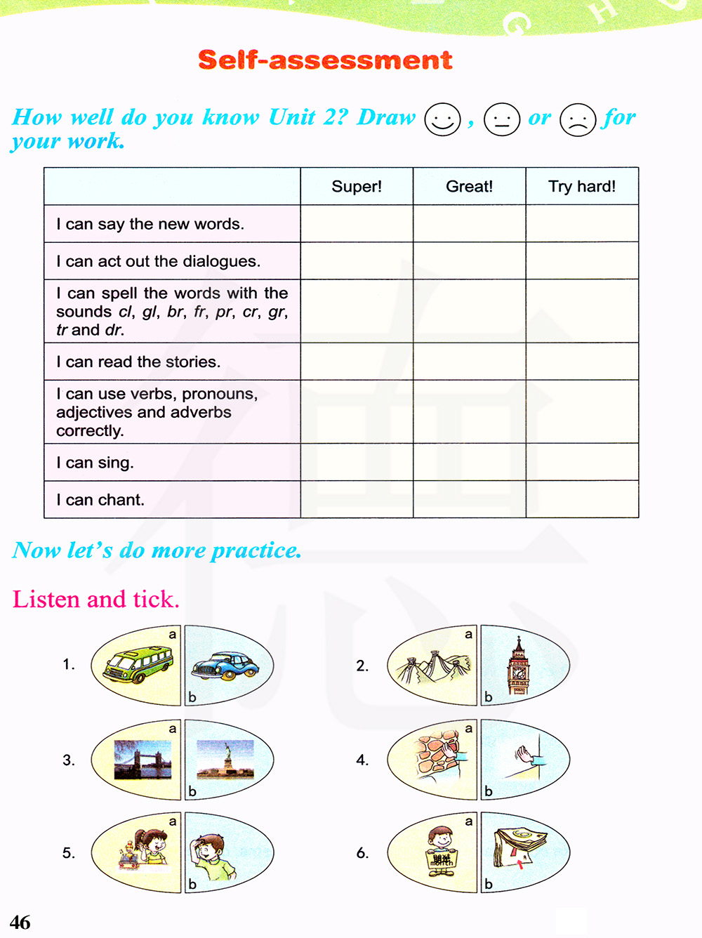 你第二单元学得怎么样?给你的学习画笑脸,无表情的脸或哭脸。
