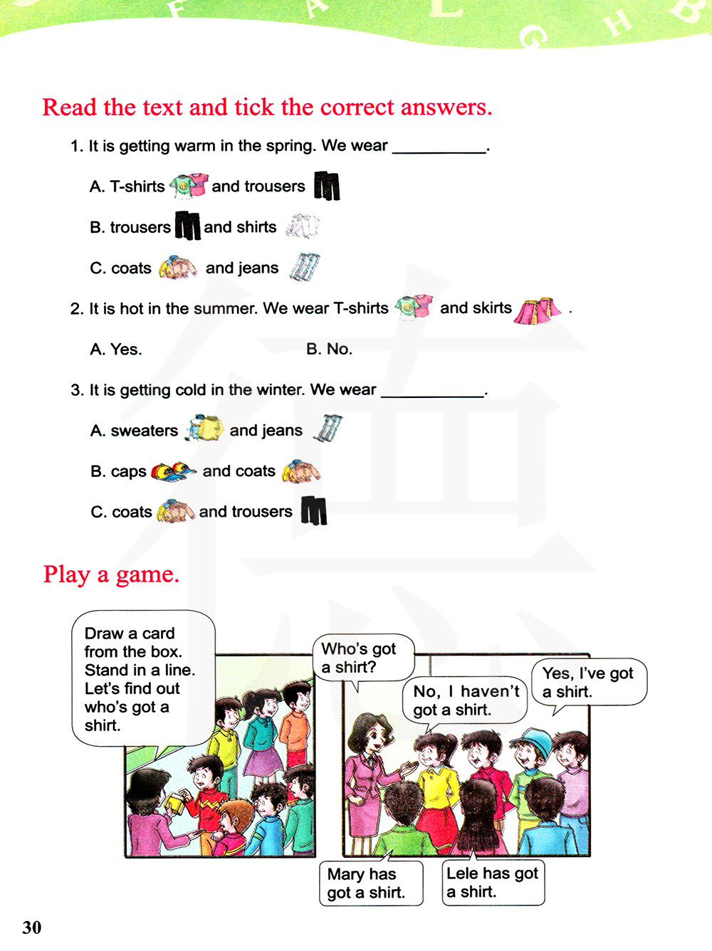在盒子里抽一张卡片,排成一列,让我们找出谁手上有衬衫