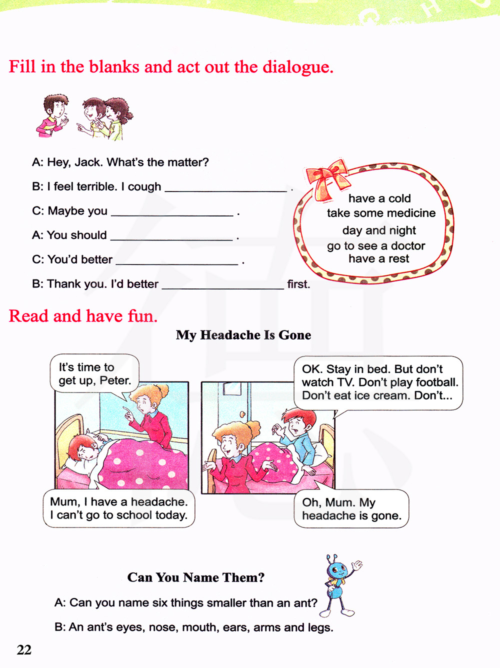 噢。妈妈,我的头痛也消失了。