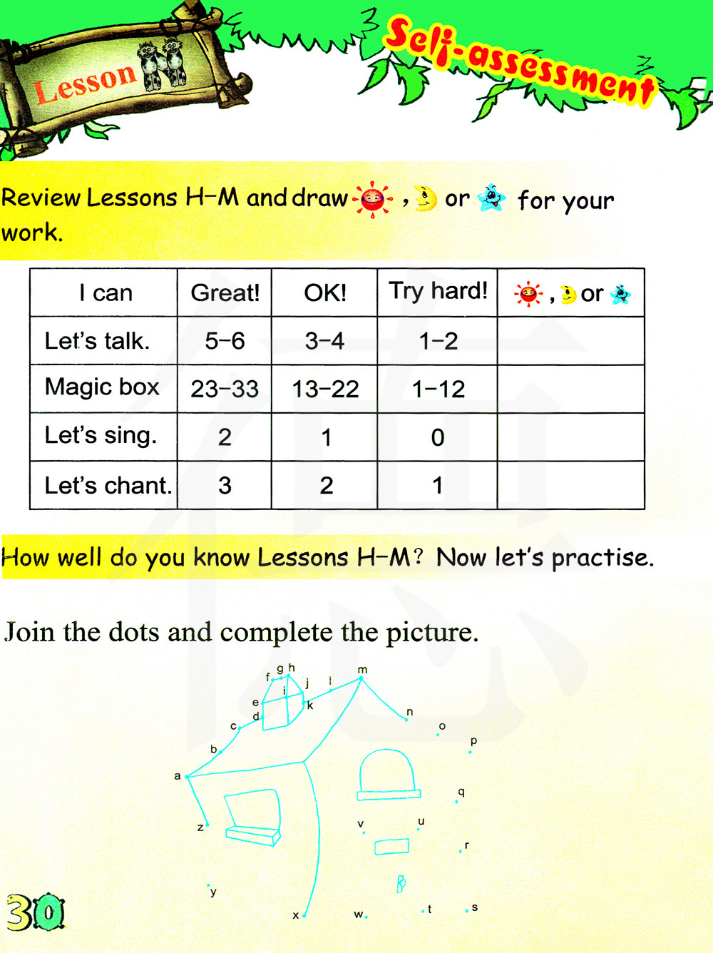复习第H课至第M课,并为你的学习情况画上太阳、月亮或星星