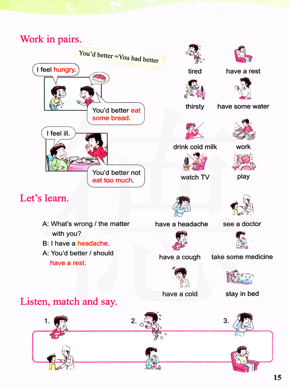 两人一组练习对话。