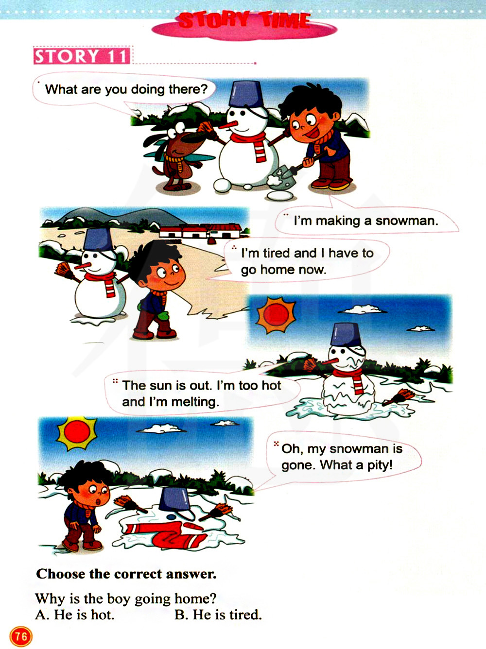 太阳出来了。我太热了,我要融化了。
