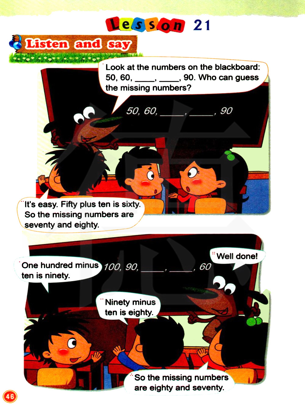 那很容易,五十加十就是六十,所以缺失的数字是七十和八十。