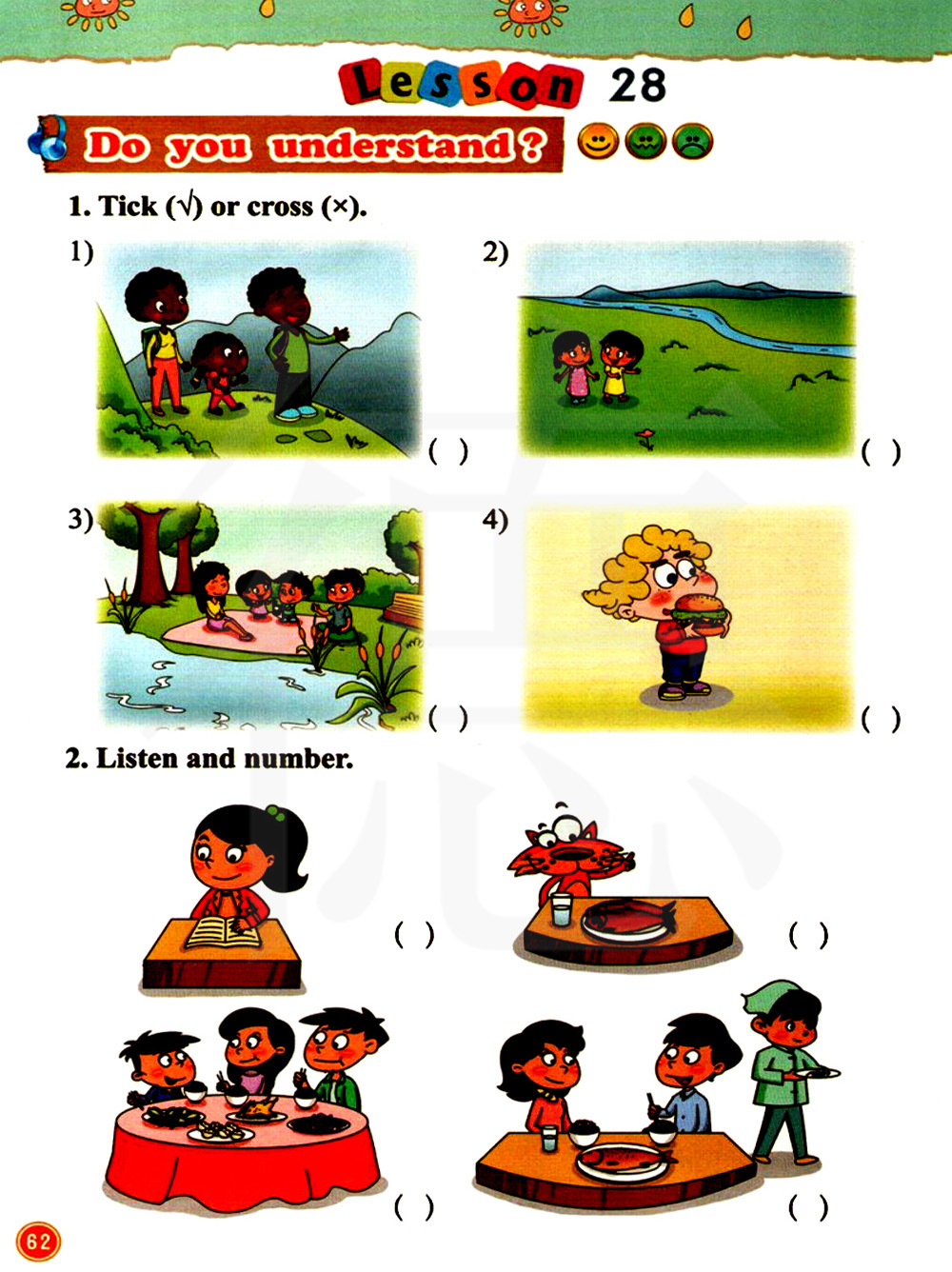 2 听录音,标序号。