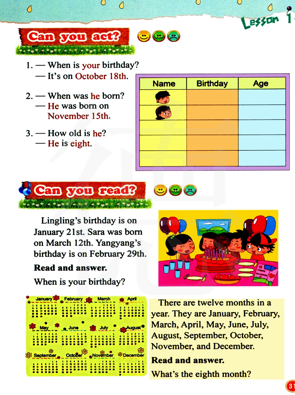 玲玲的生日是1月21日。 萨拉出生于3月12日。 阳阳的生日是2月29日。