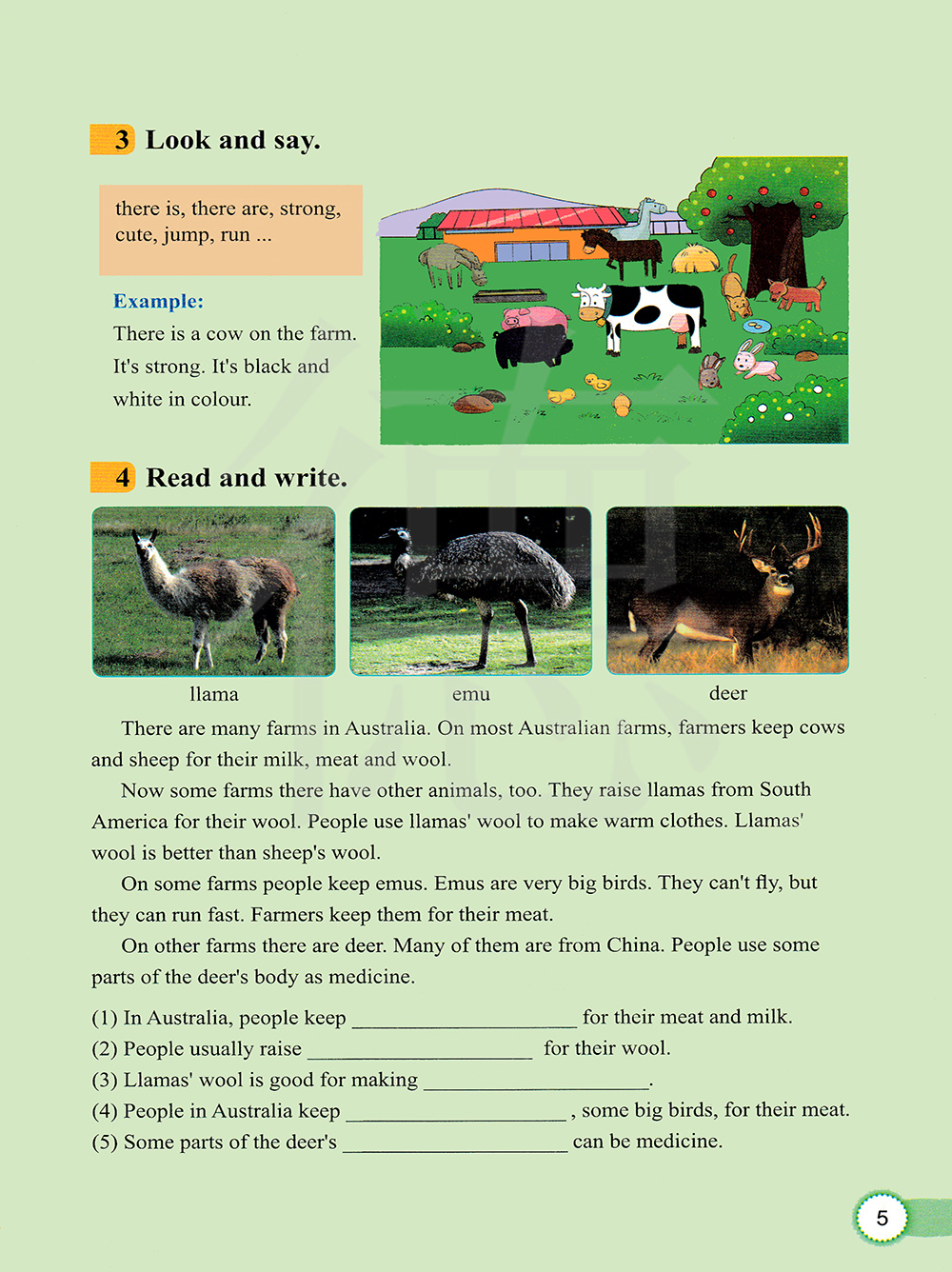 现在有的农场那还有其他的动物。他们饲养来自南美洲的骆驼以获取驼毛。人们用美洲驼的毛制作温暖的衣服。美洲驼的毛比羊毛要好。