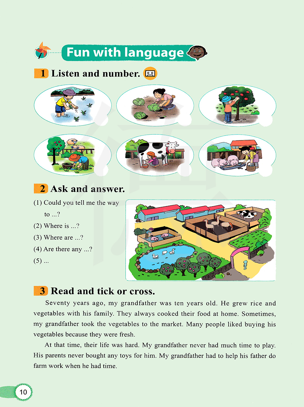 70年以前,我的爷爷10岁。他和家人种植水稻和蔬菜。他们总是在家里做饭,有时,我爷爷把蔬菜拿去市场卖。很多人喜欢买他的蔬菜,因为蔬菜很新鲜。