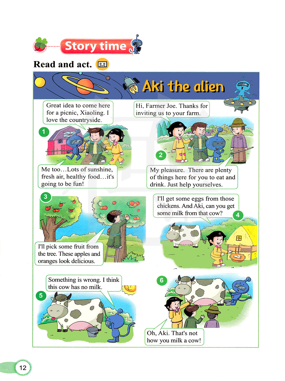 我要从那些鸡那拿一些鸡蛋。阿基,你能从那头奶牛那里获得一些牛奶吗?