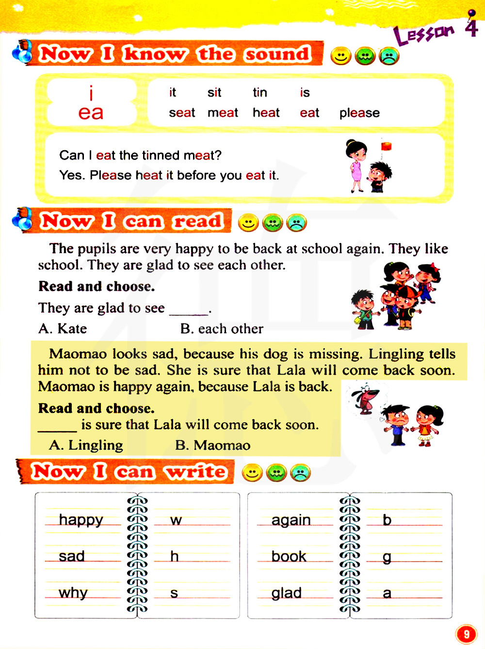 又,再次 b 书本 g 高兴的,快活的 a