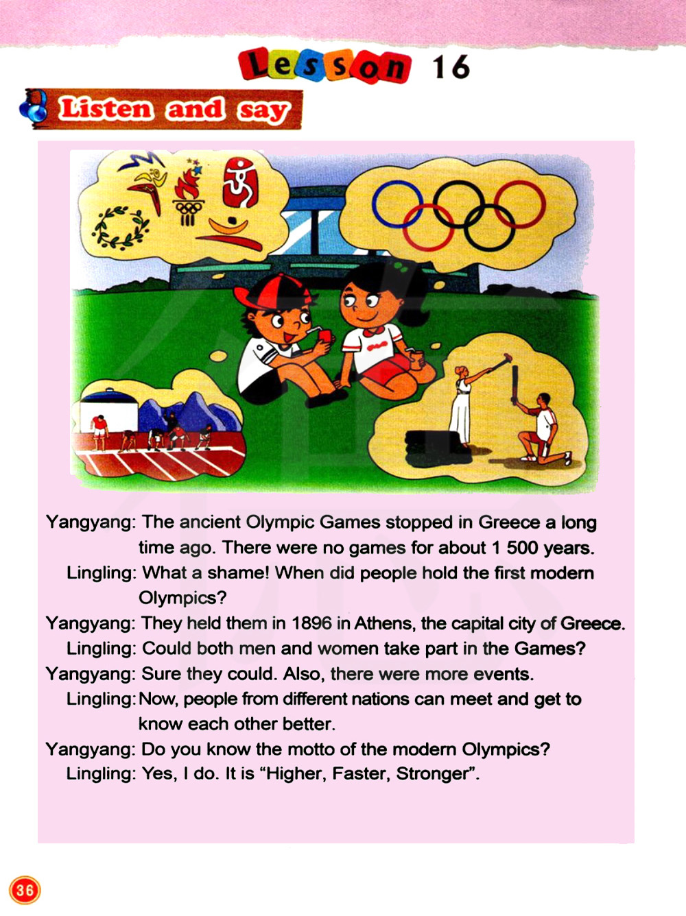 你知道现代奥运会的口号吗?是的,我知道。是更高、更快、更强。