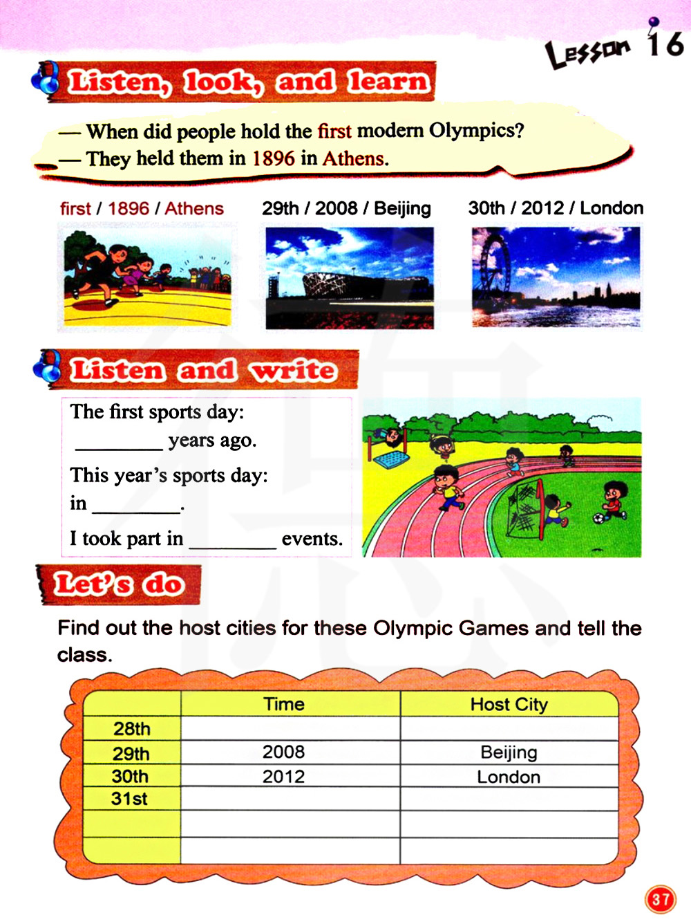 找出这些奥林匹克运动会的举办城市并告诉同学