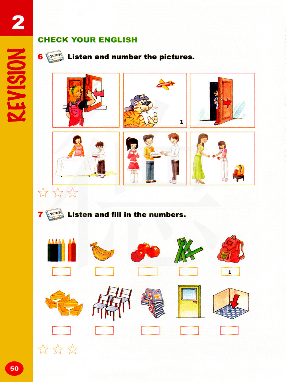 听录音并给图片编号。