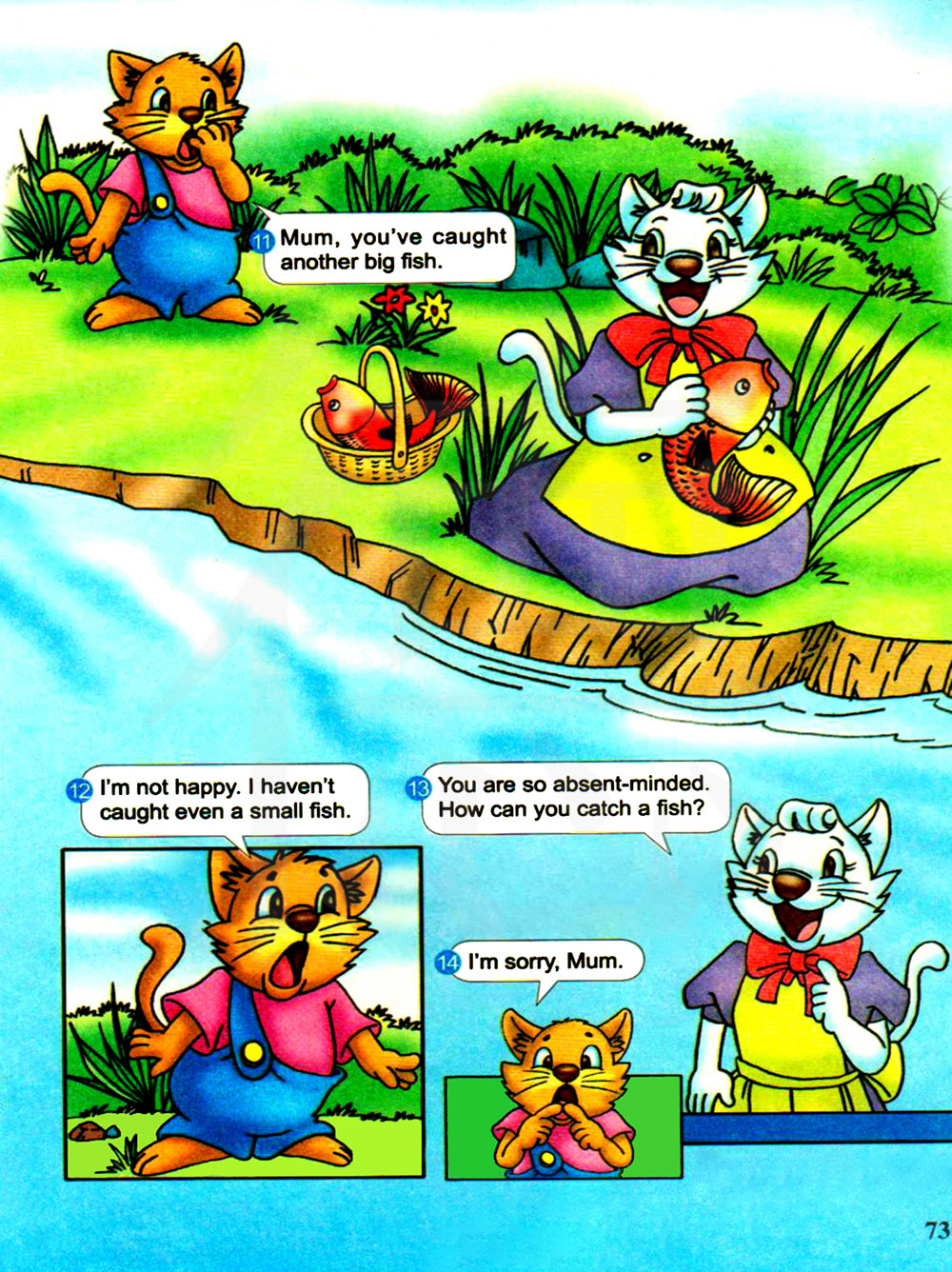 我不开心。我连一条小鱼也没有钓到。