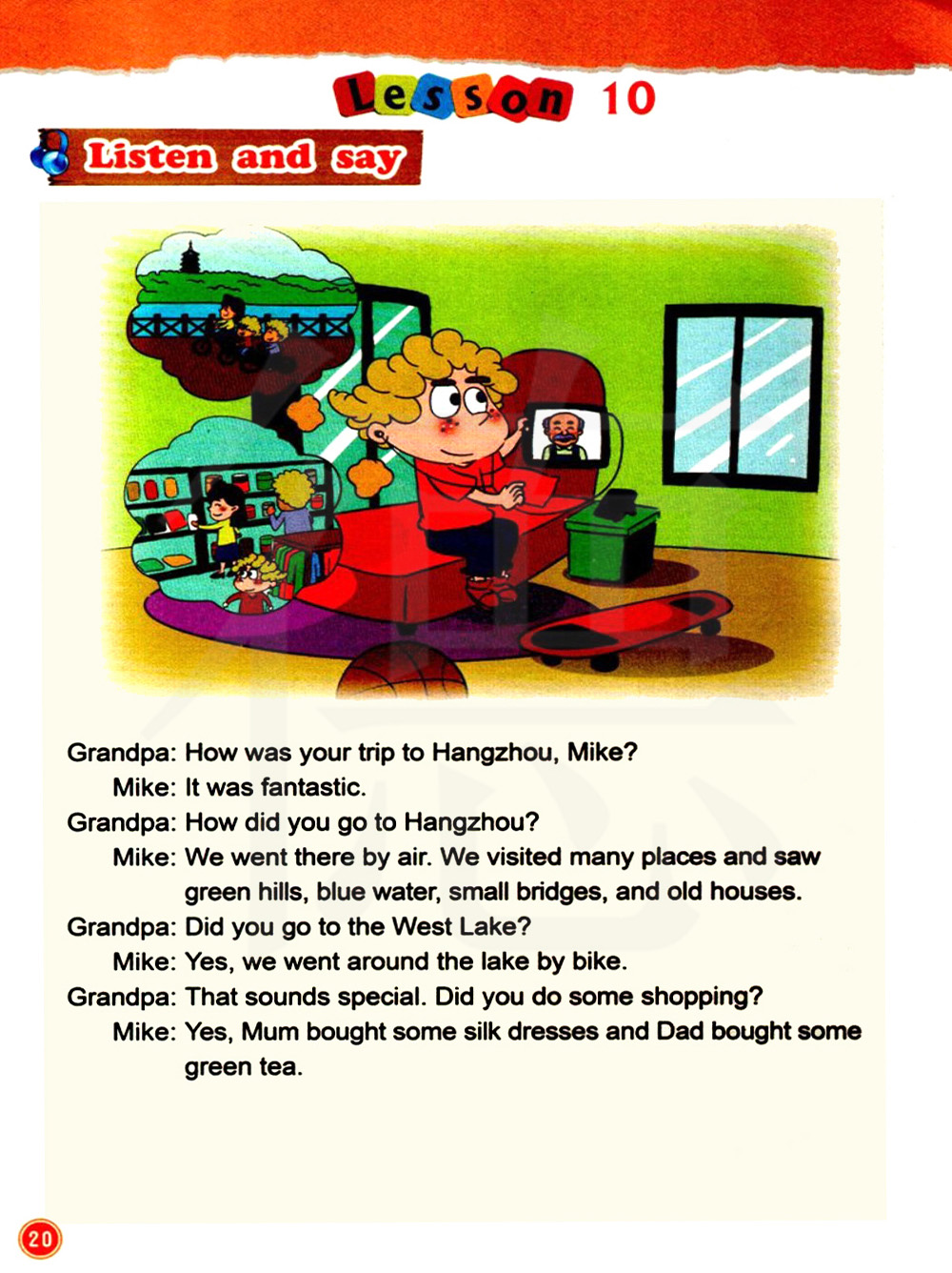 听上去很特别嘛。你们买东西了吗? 是的。妈妈买了些真丝的衣服,爸爸买了些绿茶。