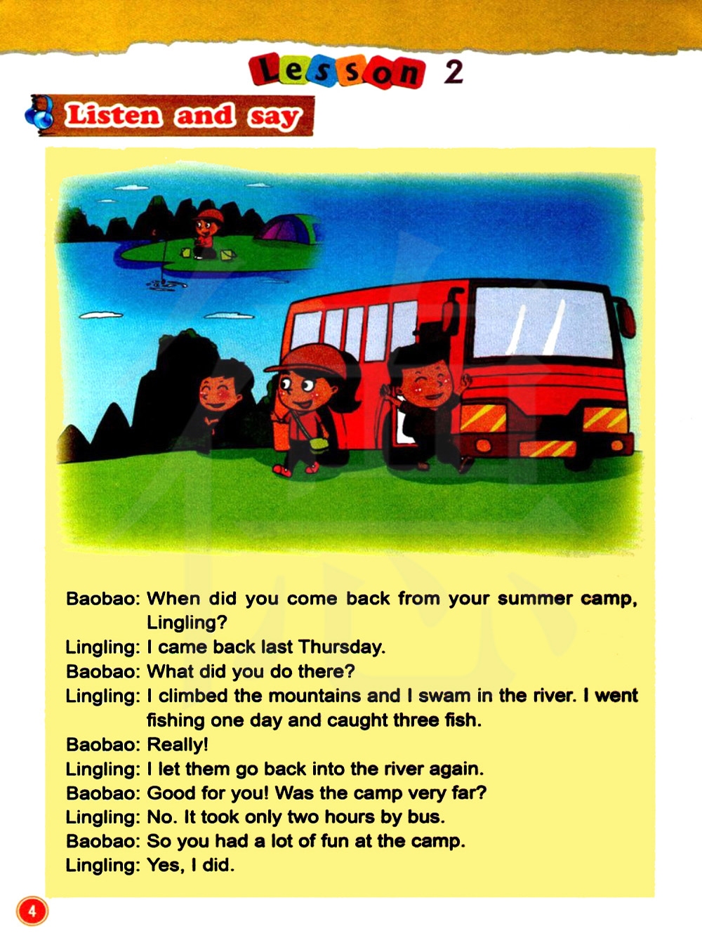 玲玲,你什么时候从夏令营回来的? 我上星期四回来的。