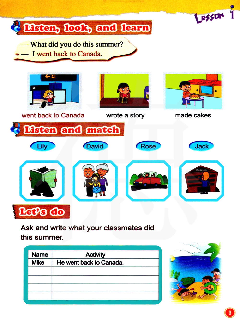 问一下你的同学这个夏天做了什么并写下来