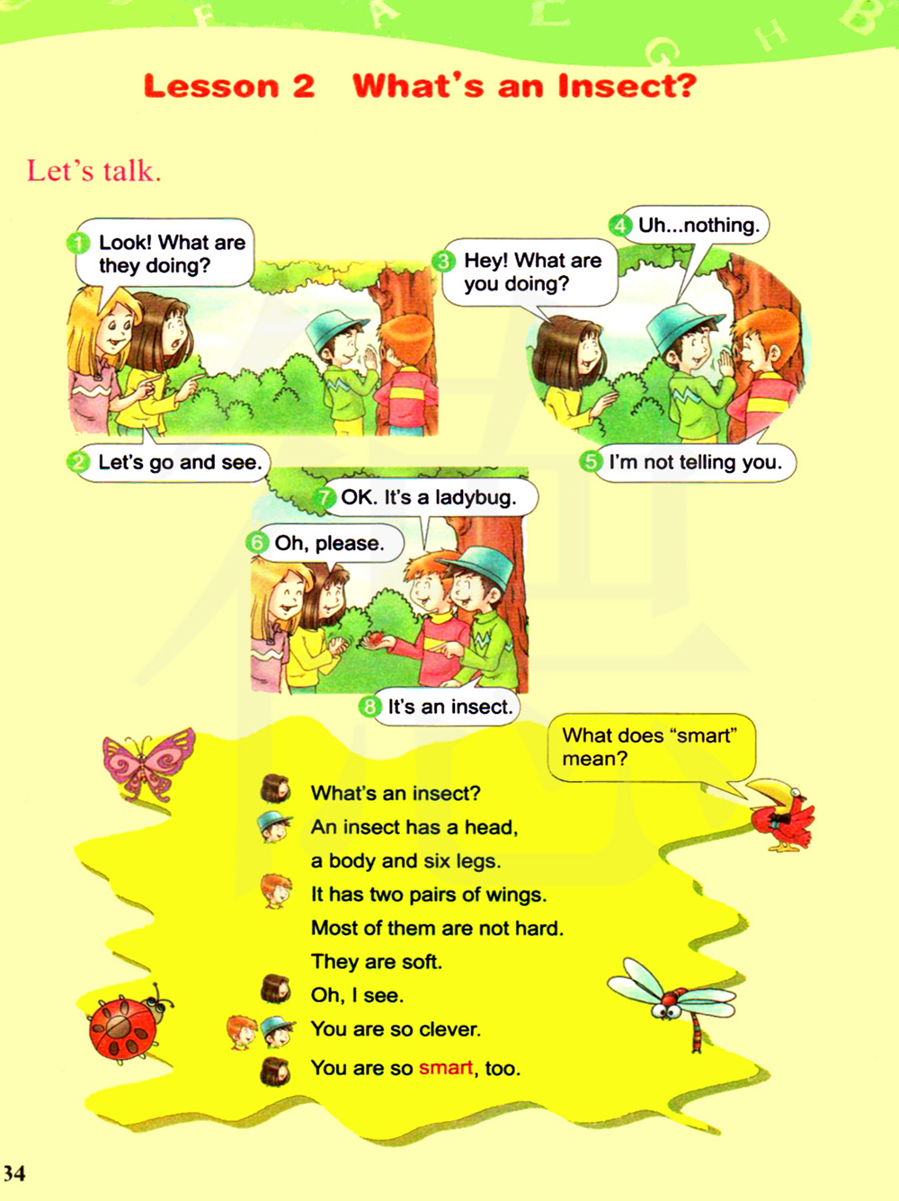昆虫是什么?昆虫有一个头、一个身体和六条腿。