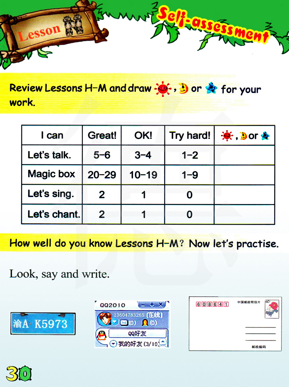 复习第H-M课并为你的作业画一画太阳,月亮或星星。