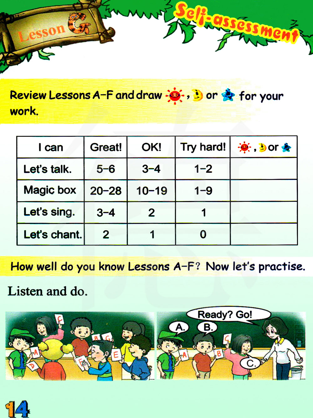 复习A-F课然后为你的作业画一画太阳,月亮或者星星。
